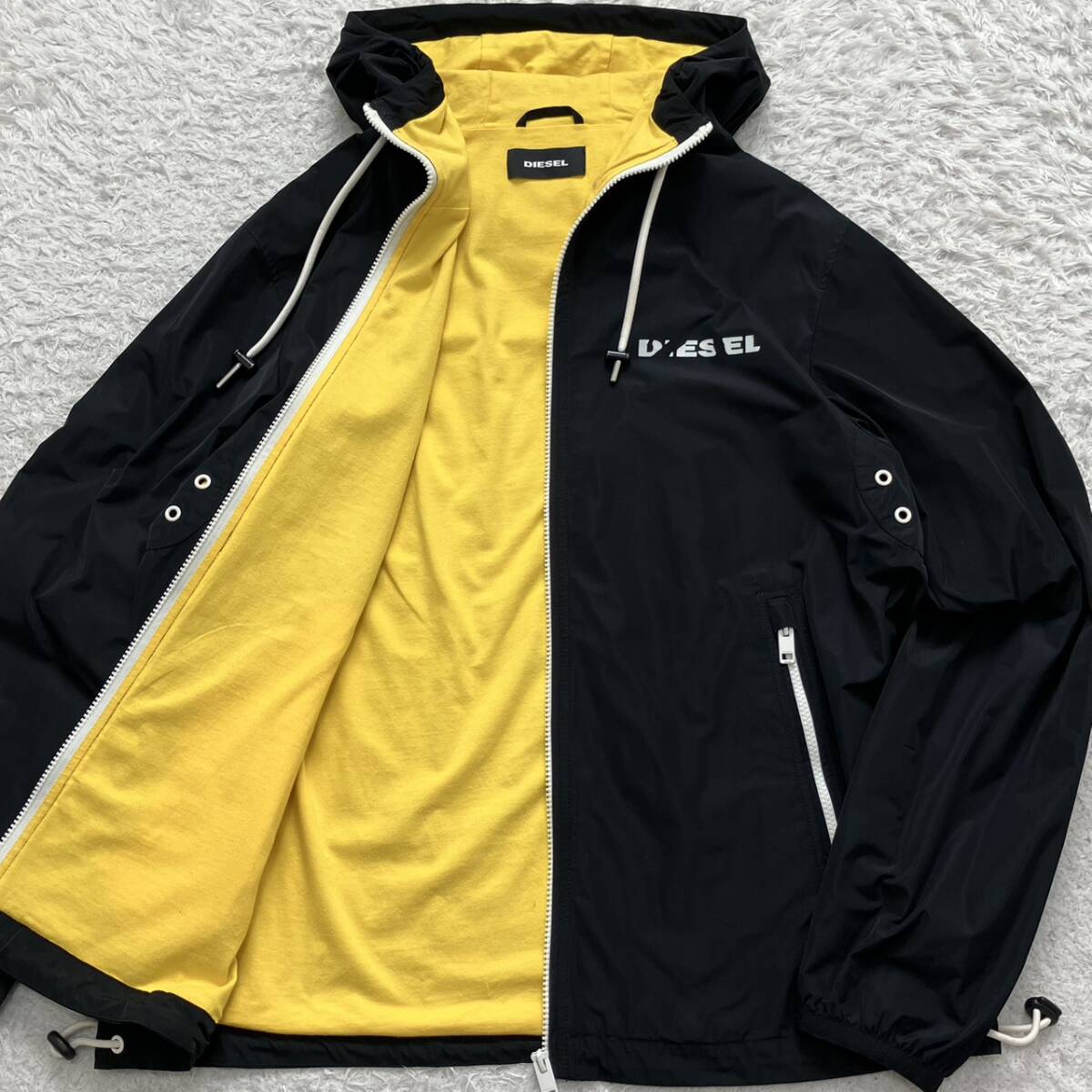 > 希少L!!極美品!!ディーゼル DIESEL ナイロンジャケット ブルゾン アウター コート パーカー ジップ フード 撥水 現行 メンズ ブラック 黒