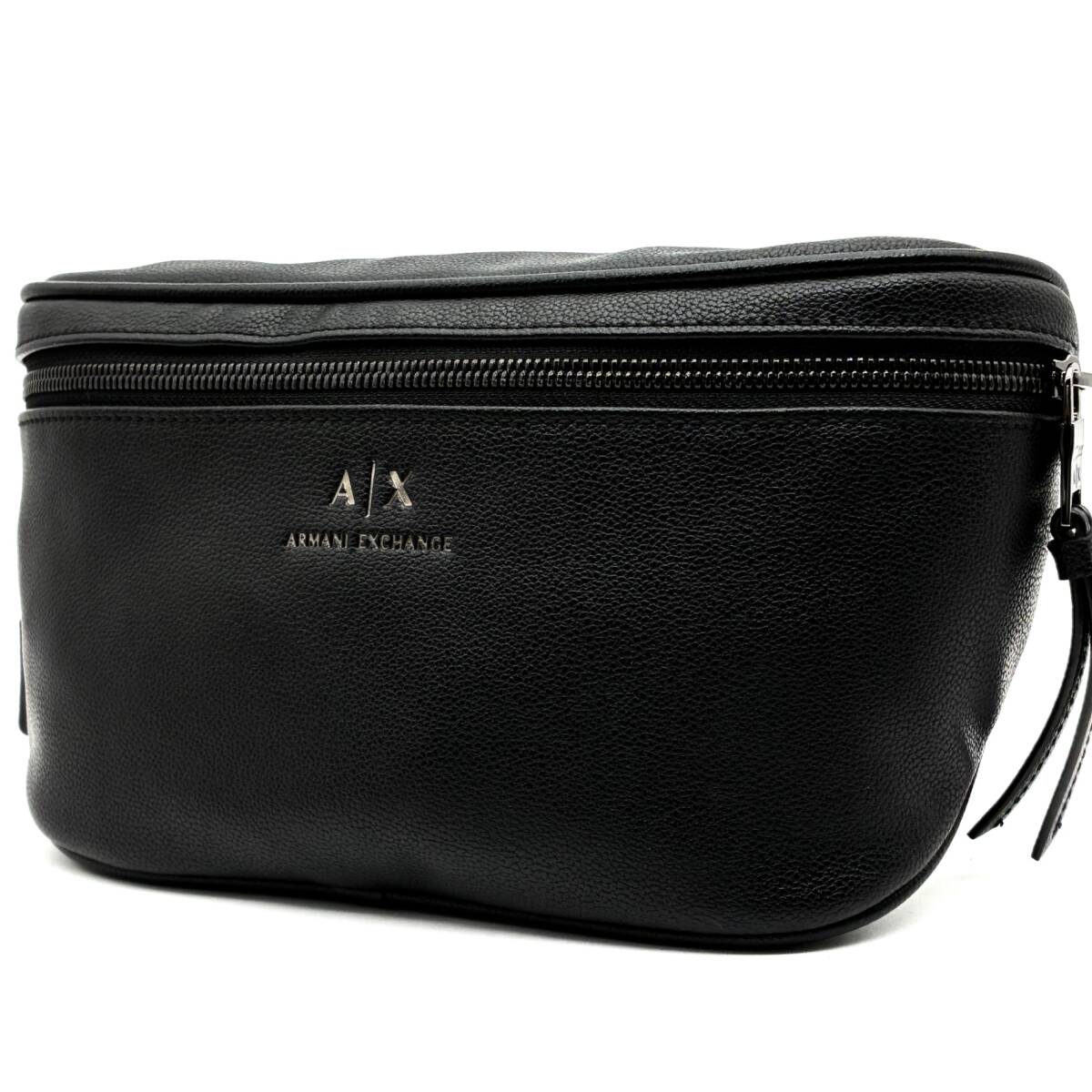 > ほぼ未使用 ARMANI EXCHANGE アルマーニエクスチェンジ ボディバッグ ロゴ レザー メンズ 斜め掛け ファスナー開閉 小物入れ ブラック 黒