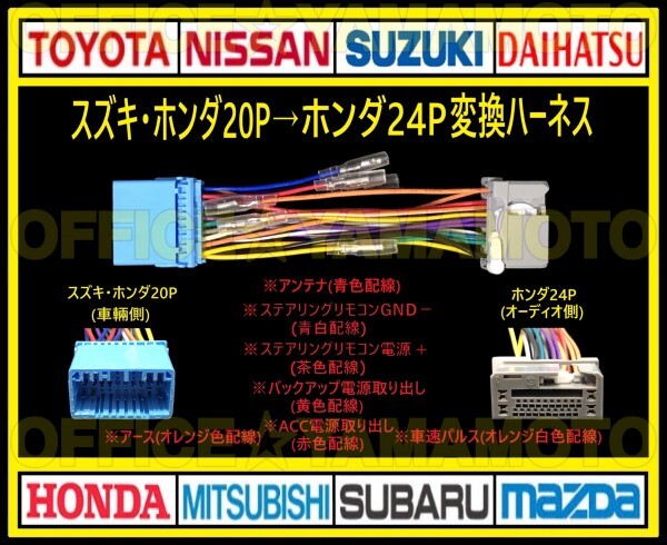 > スズキ・ホンダ20P→ホンダ24P オーディオ ナビ 変換ハーネス コネクタ カプラ 電源取出し 車速パルス(センサー)ステアリングリモコン接続f