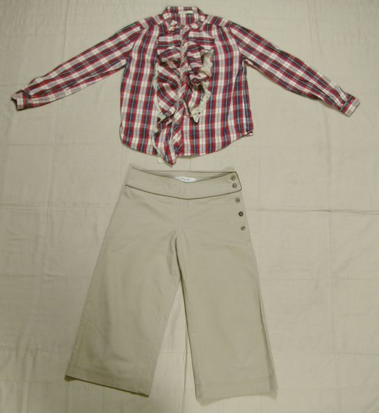- ■美品+USED:ヒラヒラチェックシャツ&8分丈幅広パンツ M位 DmH92