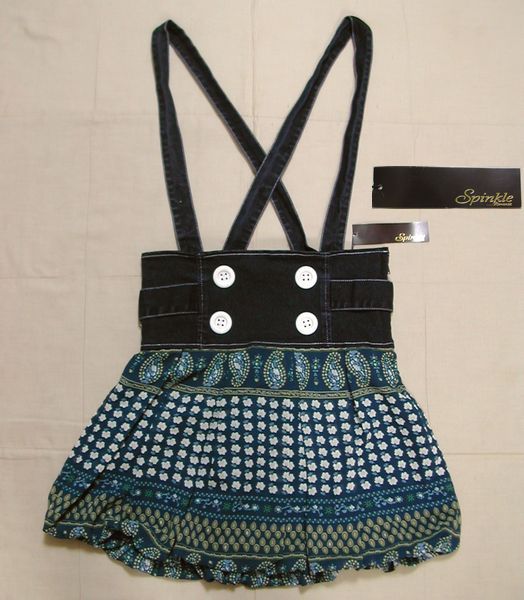 - ■タグ付新品:デニムと花柄バルーン裾の吊りスカート W61 DmM35