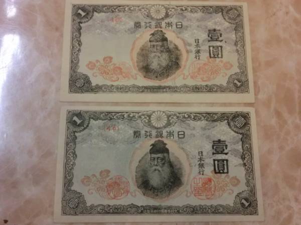 - ★ 改正不換紙幣1円 中央武内1円 極美品 2枚 ★ No.211