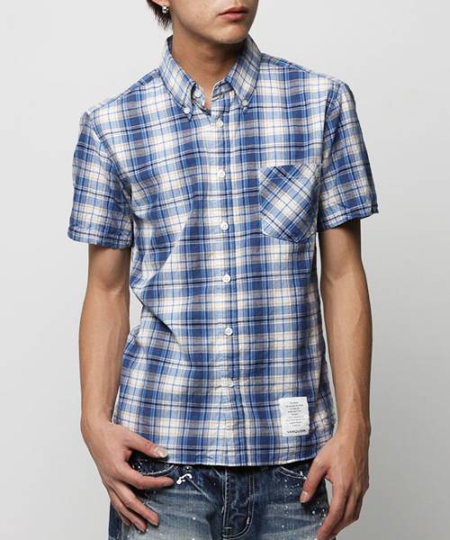 - 新品未使用VJS2061サイズL【VANQUISH紳士半袖ボタンダウンチェックシャツブルー】メンズ