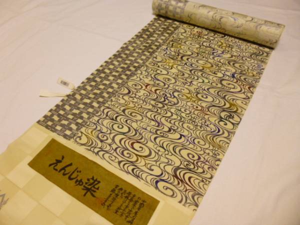 - 新品・正絹・未仕立て★えんじゅ染め・全通染帯★流水に梅文です