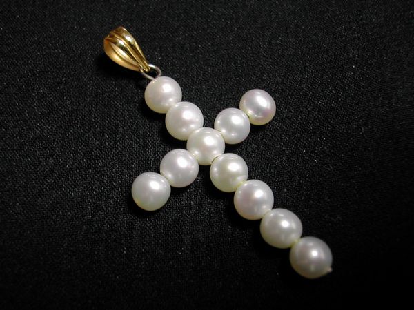 - ■美品:K18+パールで作った十字架のペンダントトップ Dn293