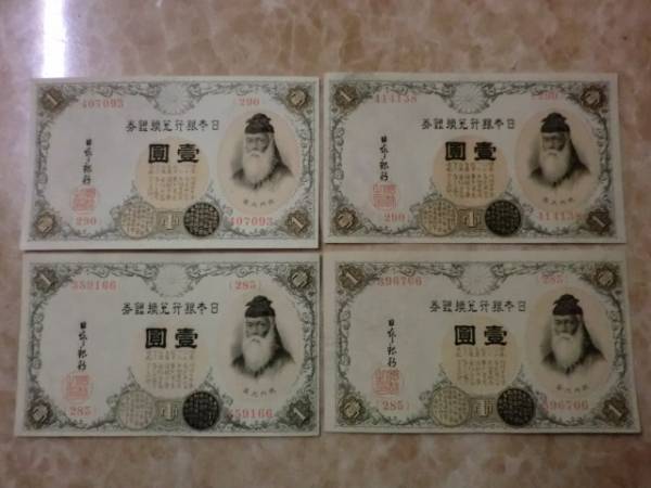 - 200番台 ★ 大正兌換銀行券1円 アラビア数字1円 4枚 ★ No.410