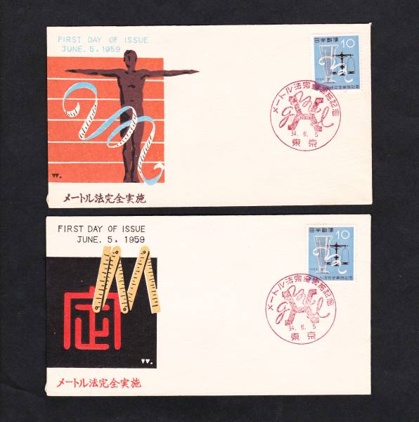 - FDC 1959年 メートル法完全実施記念 2種 松屋Z