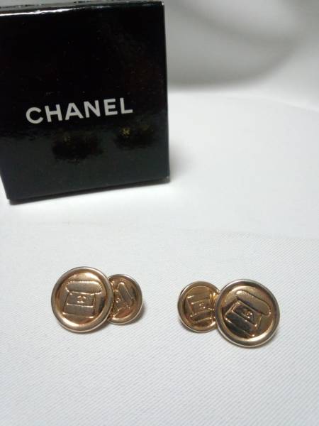 > 正規良 廃盤レア シャネルCHANEL バッグモチーフ×ロゴ 2連チェーンカフス オーバルラウンド カフリンクス ゴールド 男女兼用 メンズ 箱有