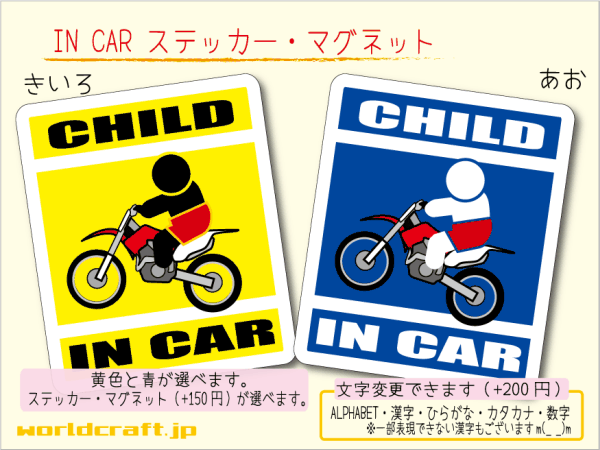 - ■CHILD IN CARステッカーモトクロスバイクライダーオフロード■ 車に ステッカー/マグネット選択可能☆ (2