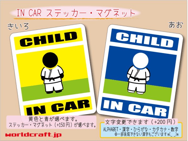 > ■CHILD IN CARステッカー柔道 空手 格闘技■ 1枚 色・マグネット選択可■子どもが乗ってます かわいい耐水シール KIDS 車に☆(4
