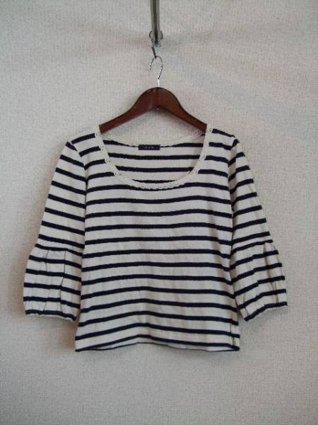 - pourlafrime襟レース付きボーダー7分袖カットソー(USED22214②)