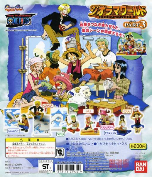 > ■ガシャポン販売機用 ディスプレイ台紙 【ONE PIECE ワンピース ジオラマ ワールド PART.3】…新品台紙1枚 ※BANDAI 2003/バンダイ