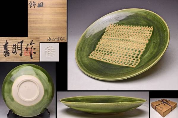 - 安原喜明 ★ 織部彫文飾皿 ★ 共箱 ★ 検 板谷波山 眞葛香山 帝室技芸員