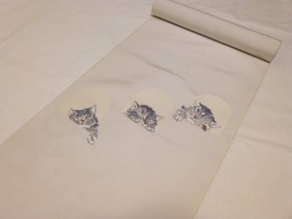 > 新品・未仕立て★京都西陣・りょうこう製八寸なごや帯★仔猫柄