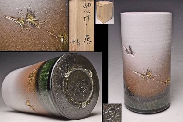 - 加藤しょう ★ 釉彩蝶文花入 ★ 共箱 ★ 物故巨匠 ★ 父 加藤丈助 ★ 検 瀬戸