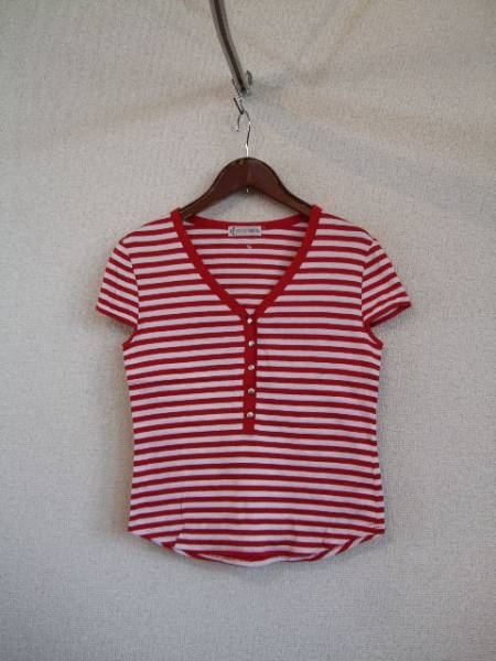- 22OCTOBRE赤ボーダー半袖カットソー(USED)41214
