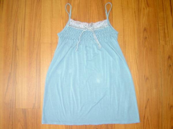 - ROPEロペ★刺繍レース&リボン キャミソール ワンピース青ブルー