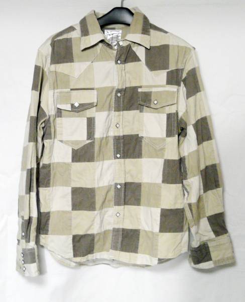 - 細コーディュロイ パッチワーク ウエスタンシャツ美品 M