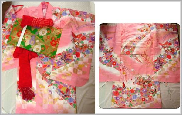 - 超美品”京呉服 七五三 7歳用 正絹 お祝い着振袖&袋帯,他セット
