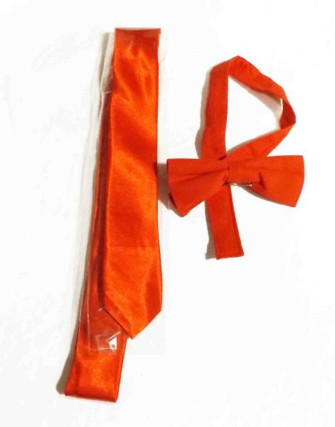 - 細サテン5cmネクタイ赤 新品+赤蝶ネクタイ2点セット