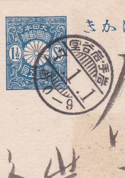 - t1894櫛型年賀印/岩手・岩谷堂7.1.1/前0-9分銅葉書