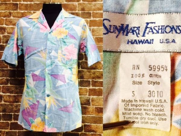 > ★表記S/USA製!1980'sヴィンテージ.花柄Hawaii製.ハワイアンアロハシャツ.アメリカ製古着.Vintage.総柄.70'sヒッピー西海岸サーフスタイル