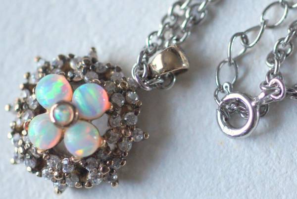 - シルバー925製 オパール風石付きお花デザインのネックレス