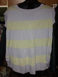 - ライラックラベンダーシルバーボーダーサマーニット半袖M7~9号