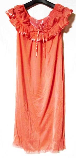 - USA70'sヴィンテージ/ネグリジェ/レースフリルロング31ピンク蝶