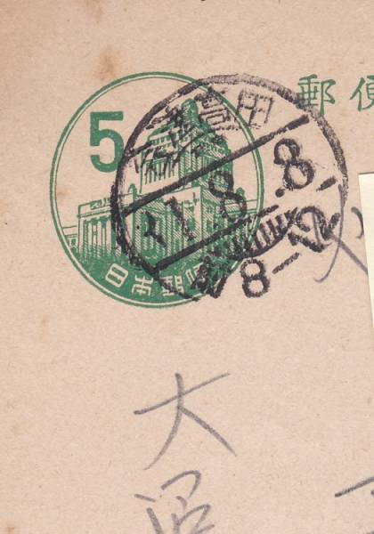 - t1910★櫛型印/会津高田31.8.8//葉書