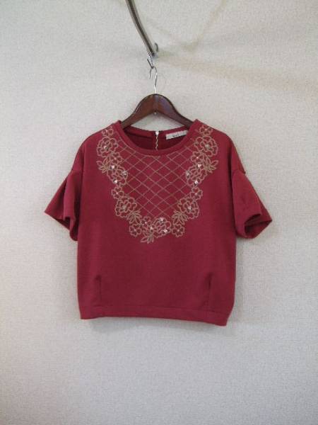 - dazzlinボルドーバラ刺繍入り半袖プルオーバー(USED)60115)