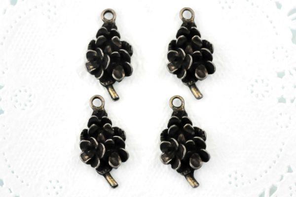 > パンジー ブーケ フラワー 花 ヴィンテージ カボション リプロ チャーム ハンドメイド アクセサリー パーツ 銀古美 23mm 4個