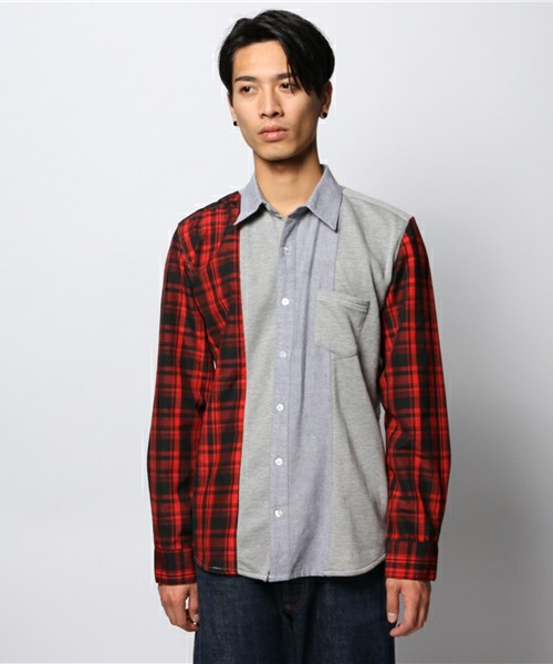 - 新品 NOT RIGID ノットリジッド チェック切替シャツ