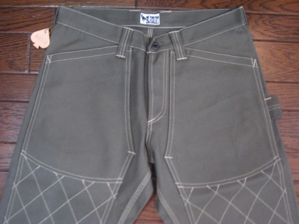 - ダブルニー ダイヤ 糸 ダック ペインター パンツ M 緑 オリーブ 検索 ビンテージ ワーク バイカー
