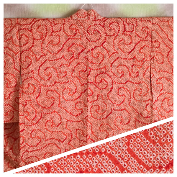 - 【羽織】正絹 袷 着丈69.5cm 朱色 総鹿の子絞り 唐草模様 150910-2