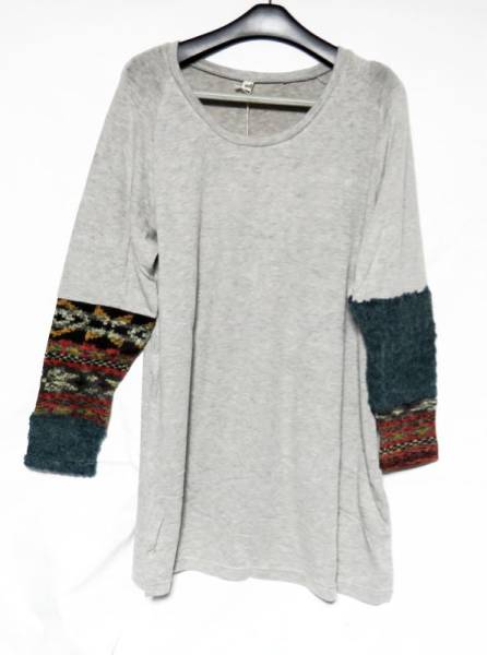 - モコルチュニック切替さりげないエスニックグレー男女兼用