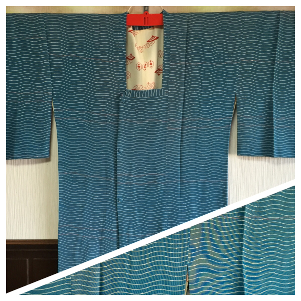 - 【道行コート】正絹 袷 着丈84.5cm 縹色(はなだ) 波線 リメイク