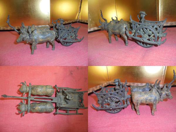 - AKa5377◆隼◆古銅 牛車 置物 人形 古玩旧家蔵出骨董初だし