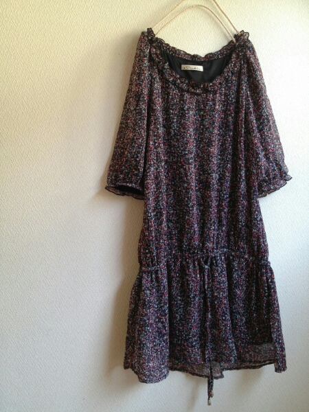 - ★小花総柄が可愛いシフォンの半袖ワンピース★裏地付き★M★