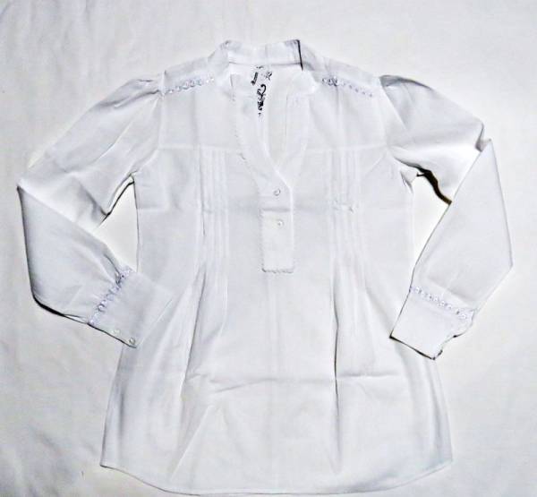 - ハンガリーモダンエスニックシャツ半袖白レースAレディス