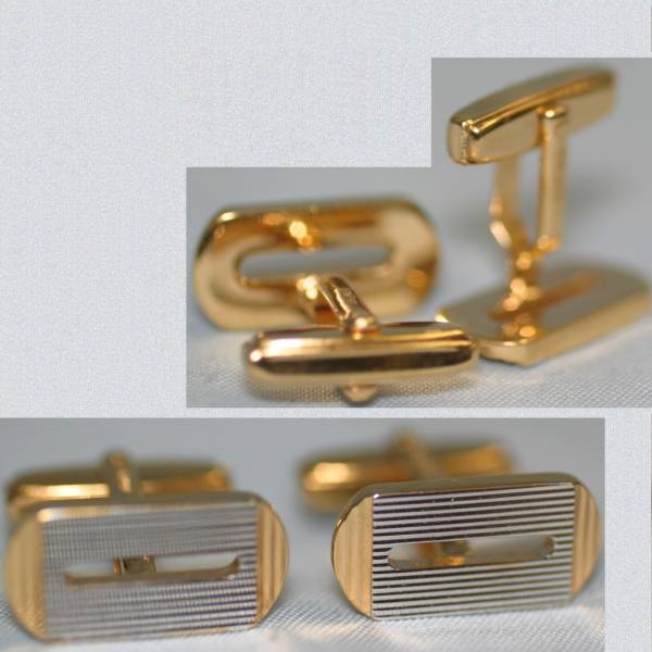- 紳士用銀色横ストライプ金色縦ストライプコンビカフスボタン綺麗