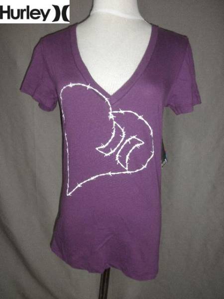 - USA購入 ハーレーHurley有刺鉄線ハートプリントVネックT US S紫