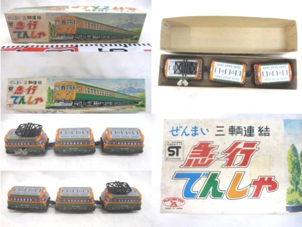 - ●ミニトラム《三輌連結 急行でんしゃ:ぜんまい式》(パパジ-ノ社)[紙箱付・新品]●