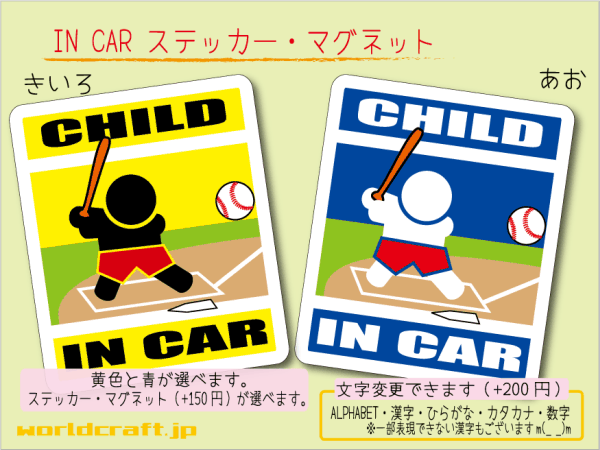 - ■CHILD IN CARステッカー野球バッター!■子ども乗ってます!KIDS 車に ステッカー/マグネット選択可能☆