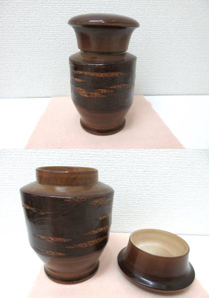 - 美品・逸品■桜木 一刀彫 茶葉入れ 茶筒 管理1607 C-9