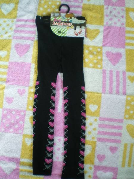 - 女児 レギンス 10分丈(黒地にハート模様)105サイズ