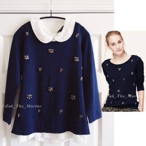 - ★新作 アンテイラー LOFT 今季 ビジュー 紺 ニット XS★