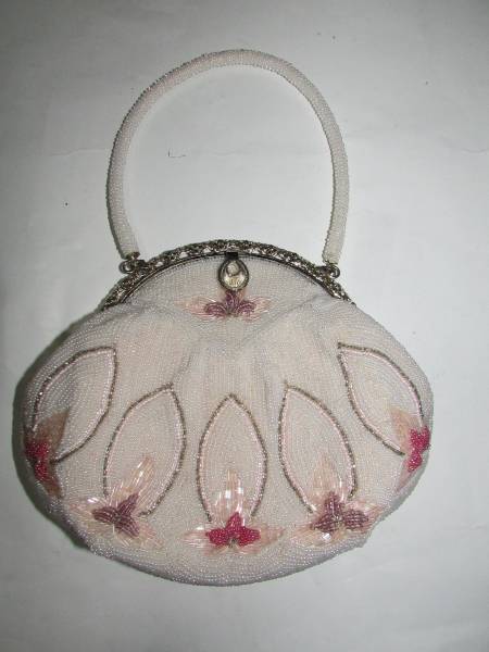 - (着物屋・蔵出し)(アンティ-クビ-ズ花模様バック)貴重