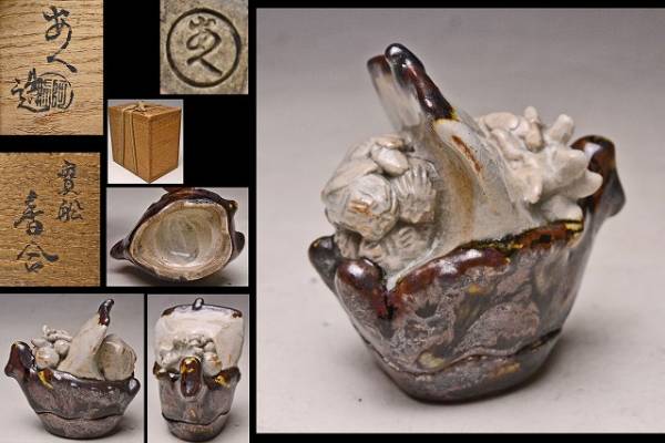 - 産地作者不明 ★ 安人作か ★ 平戸焼か ★ 鉄釉宝舟香合 ★ 共箱 ★ 米俵 ★