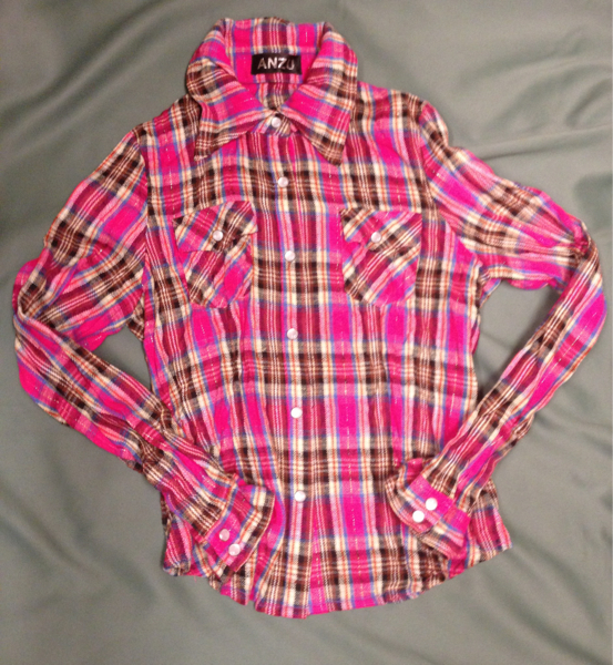 - ANZU アンズ ワイヤー入 長袖 チェック柄 ネルシャツ ピンク系
